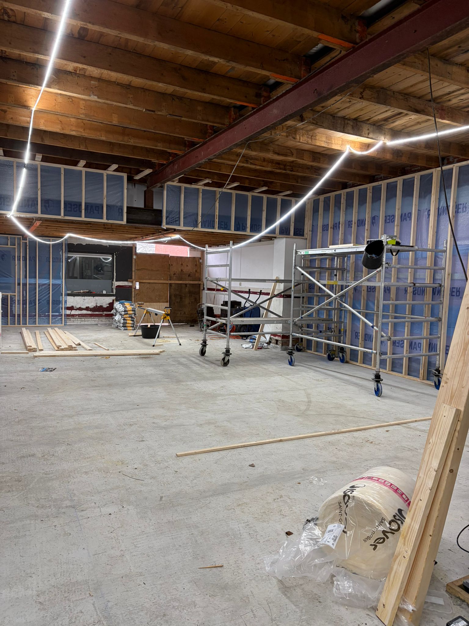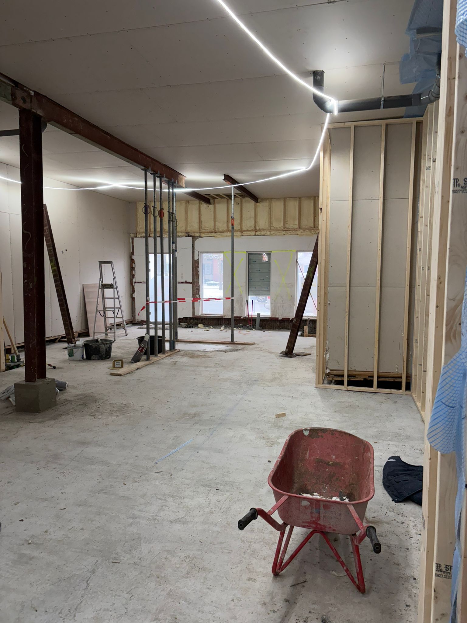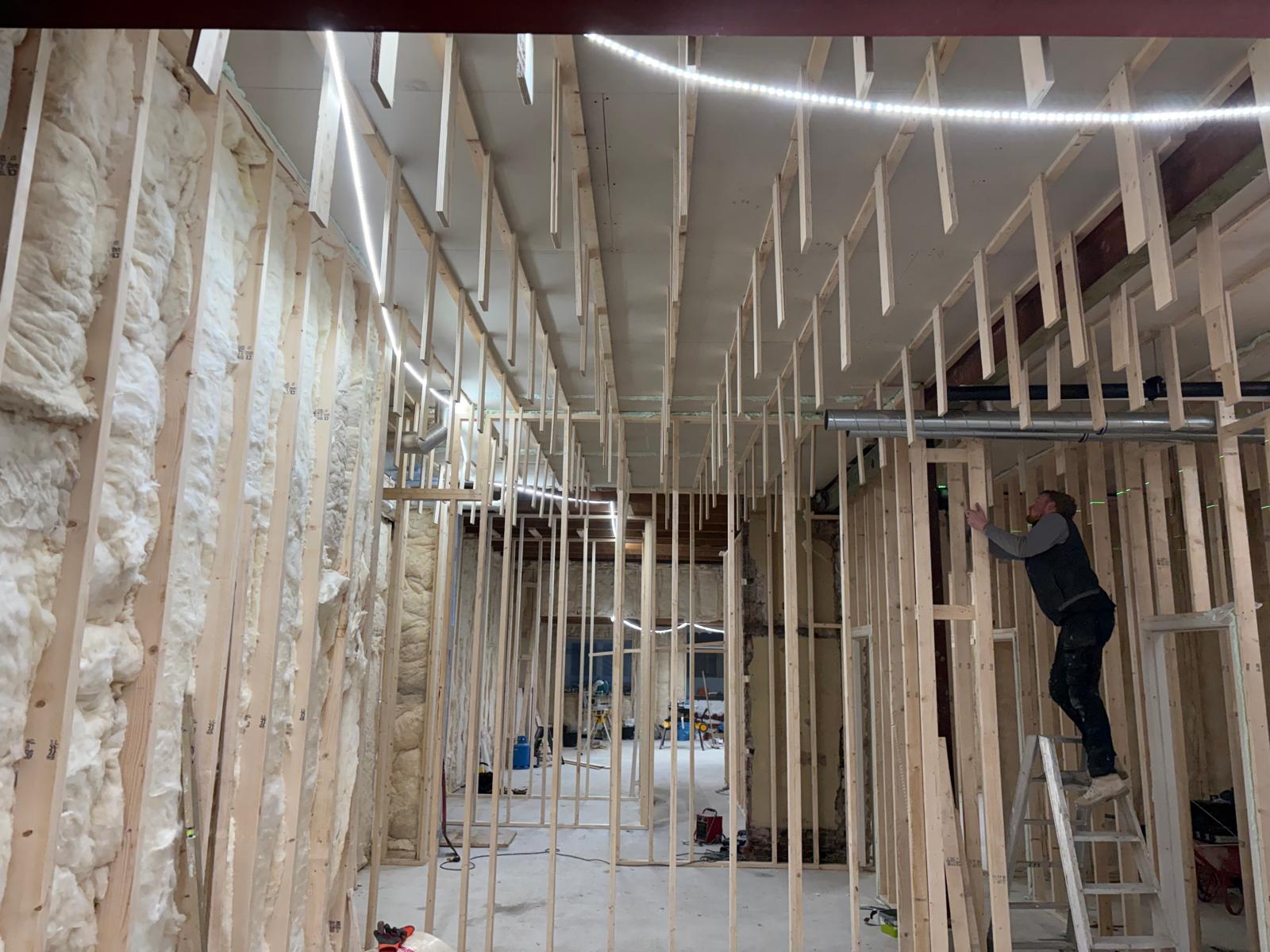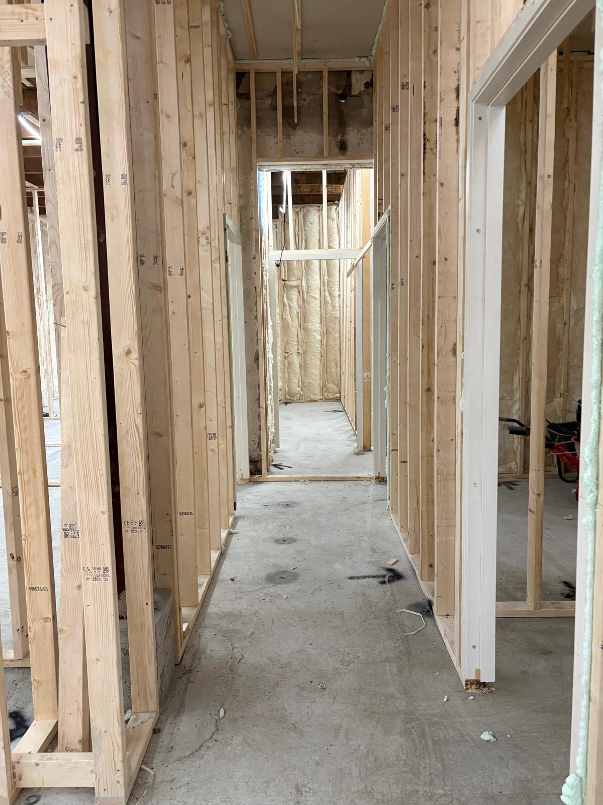 De werkzaamheden zijn gestart met het aanbrengen van een nieuwe fundatie met opgaand metselwerk en een PS-isolatievloer. Daarnaast zijn de buitengevels voorzien van nieuwe voorzetwanden. Momenteel wordt gewerkt aan de montage van de houtskeletbouw binnenwanden en het uitlijnen van de plafonds ter voorbereiding op de nieuwe gipsplafonds.